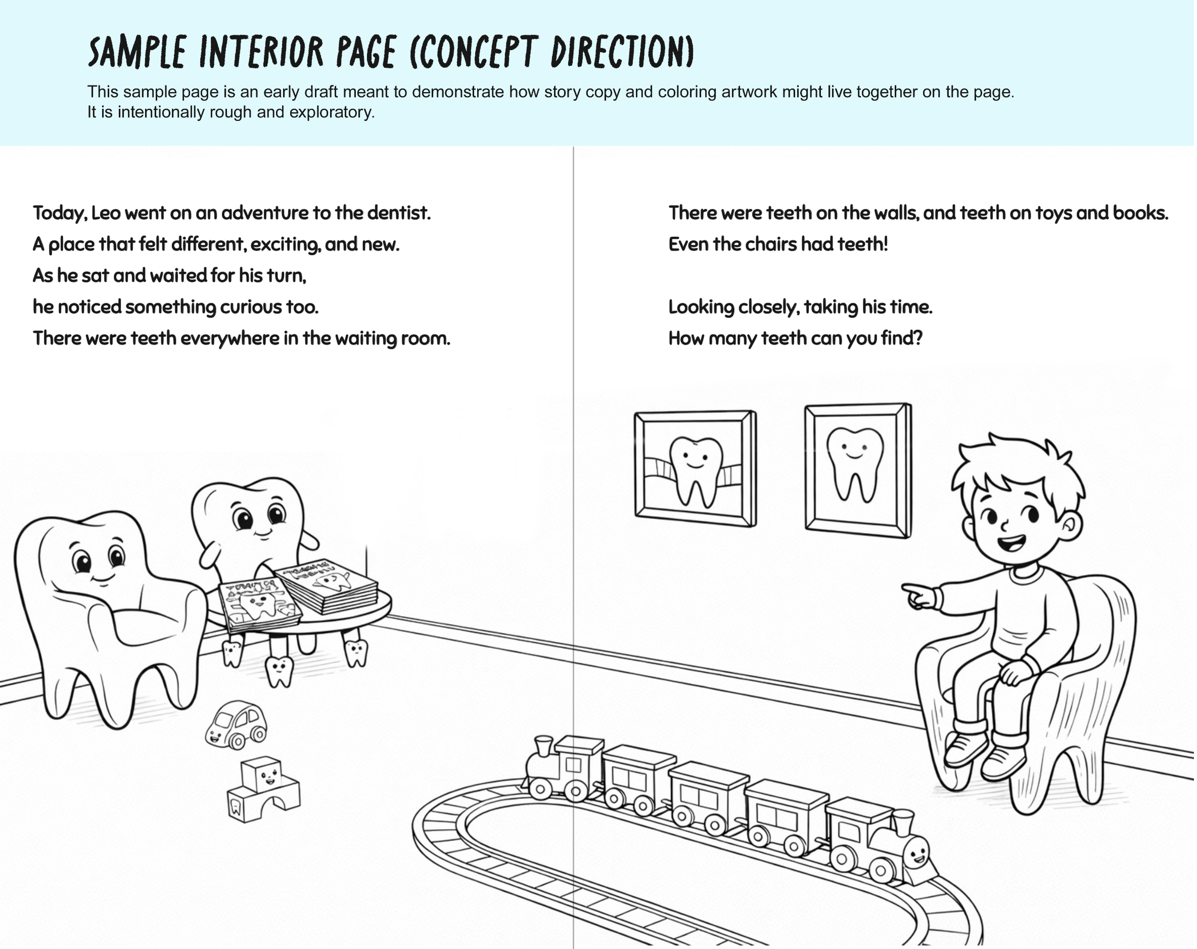 Alongside client work, I actively develop original children’s book concepts from early narrative exploration through visual storytelling and layout. This ongoing practice allows me to experiment with pacing, page turns, character presence, and compositional rhythm while refining illustration systems designed specifically for young readers.