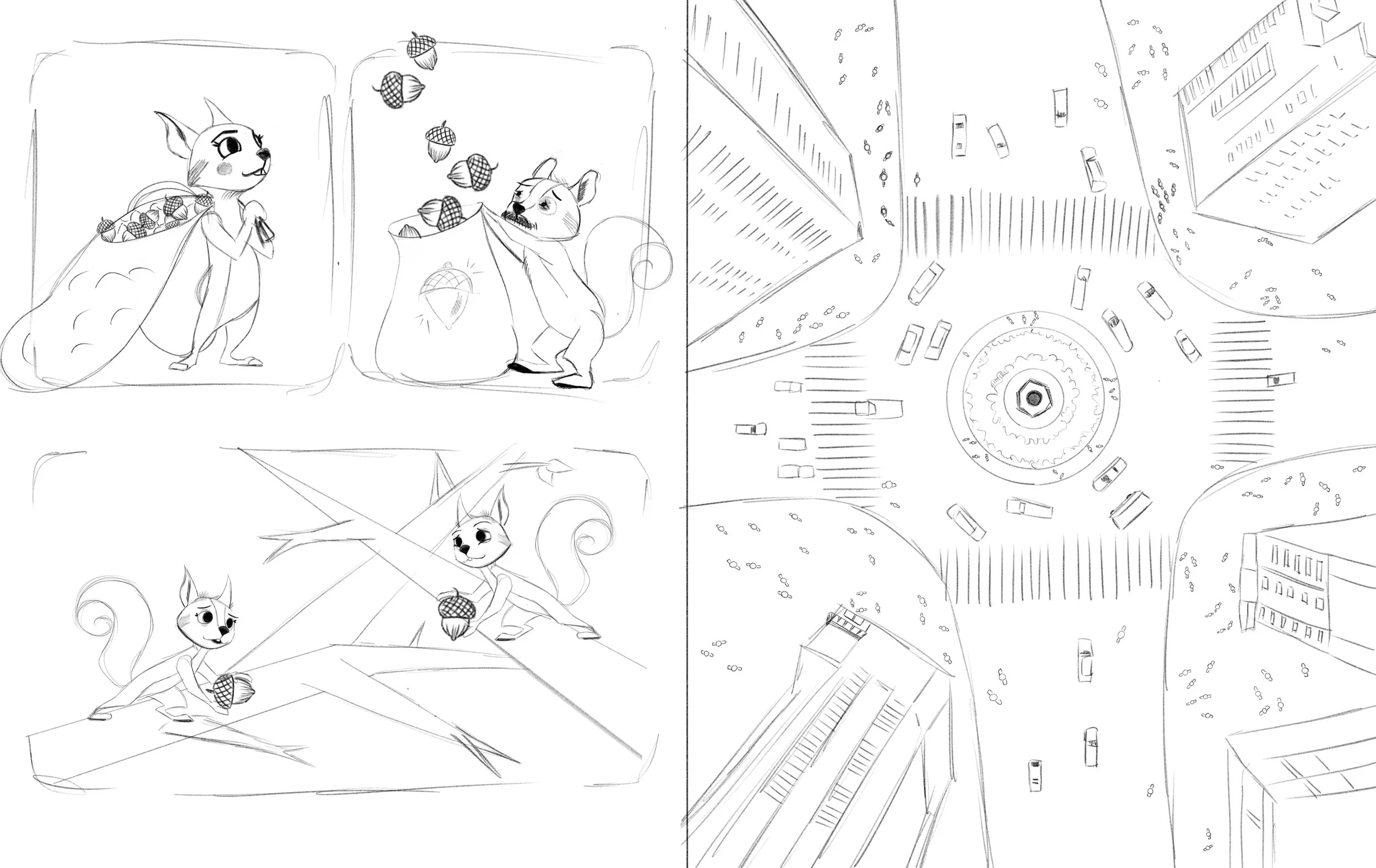 The selected works shown here offer a behind-the-scenes look at projects currently in progress — including storyboards, preliminary spreads, and visual studies — each reflecting my commitment to building thoughtful, engaging reading experiences from the ground up.
