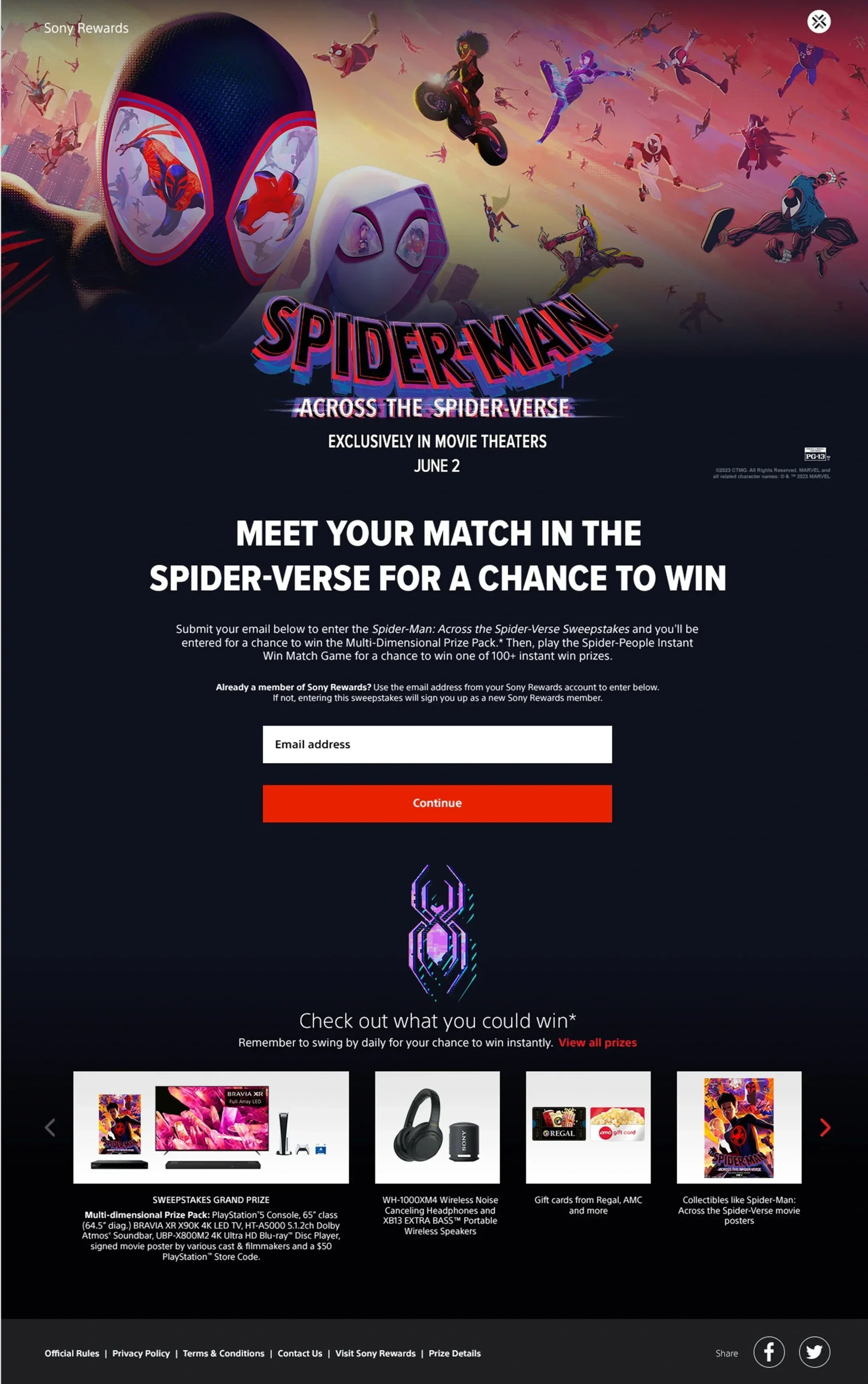 Our approach expanded on the success of the first campaign, delivering a fully integrated sweepstakes experience that invited users to “Meet Your Match in the Spider-Verse.” Fans could enter for a chance to win the Multi-Dimensional Prize Pack featuring a PlayStation®5 console and participate in daily instant-win games for additional prizes.